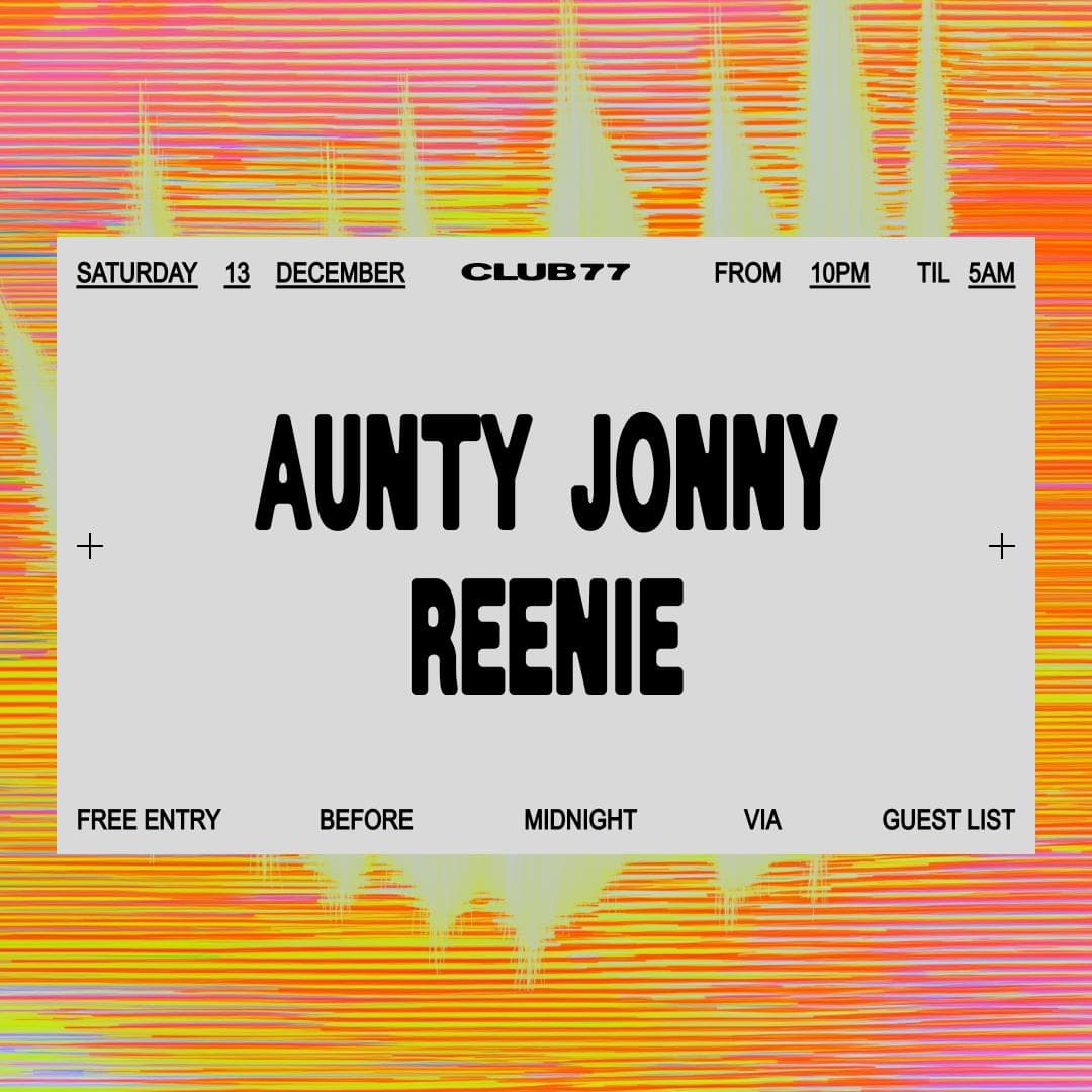 Event Info & Guest List: https://www.club77.com.au/events/club-77-aunty-jonny-reenie