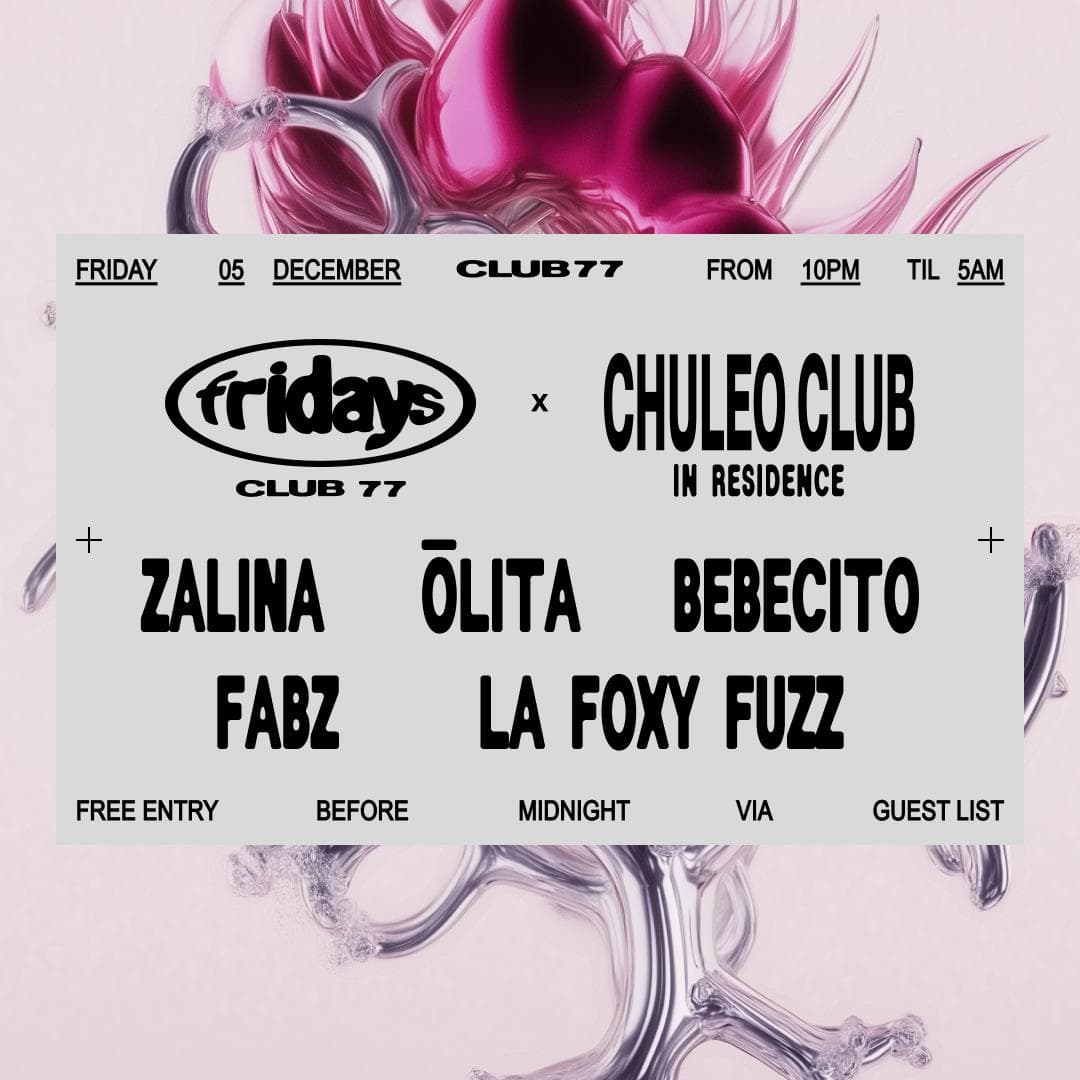 Fridays at 77 x Chuleo Club: Zalina, Ōlita, Bebecito, Fabz, La Foxy Fuzz