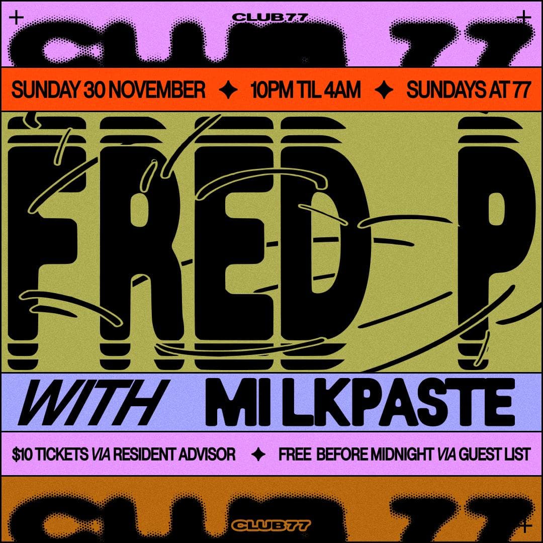 Event Info & Guest List: https://www.club77.com.au/.../sundays-at-77-fred-p-milkpaste