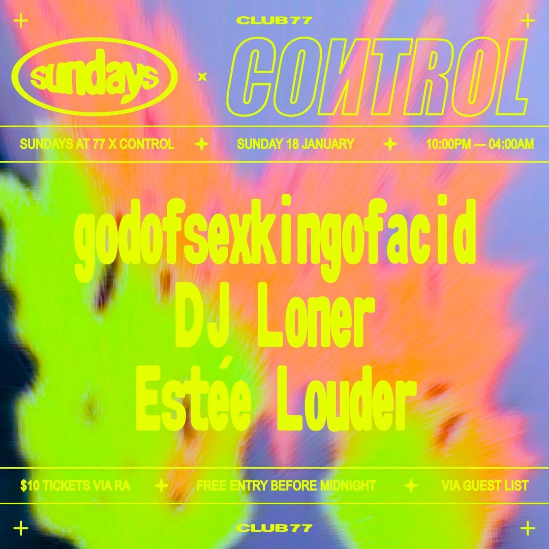 Sundays at 77 x Control: DJ Loner, godofsexkingofacid, Estée Louder